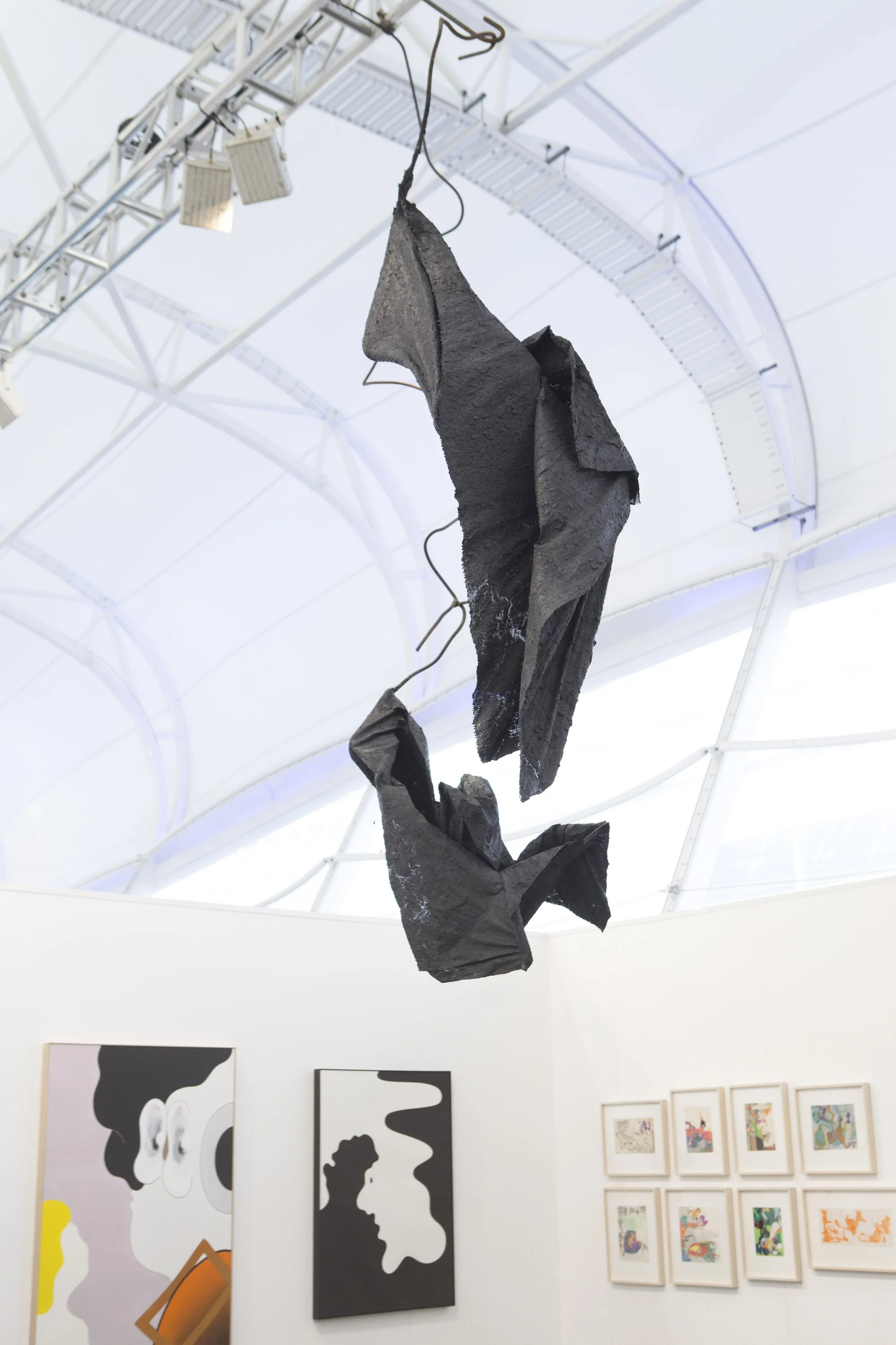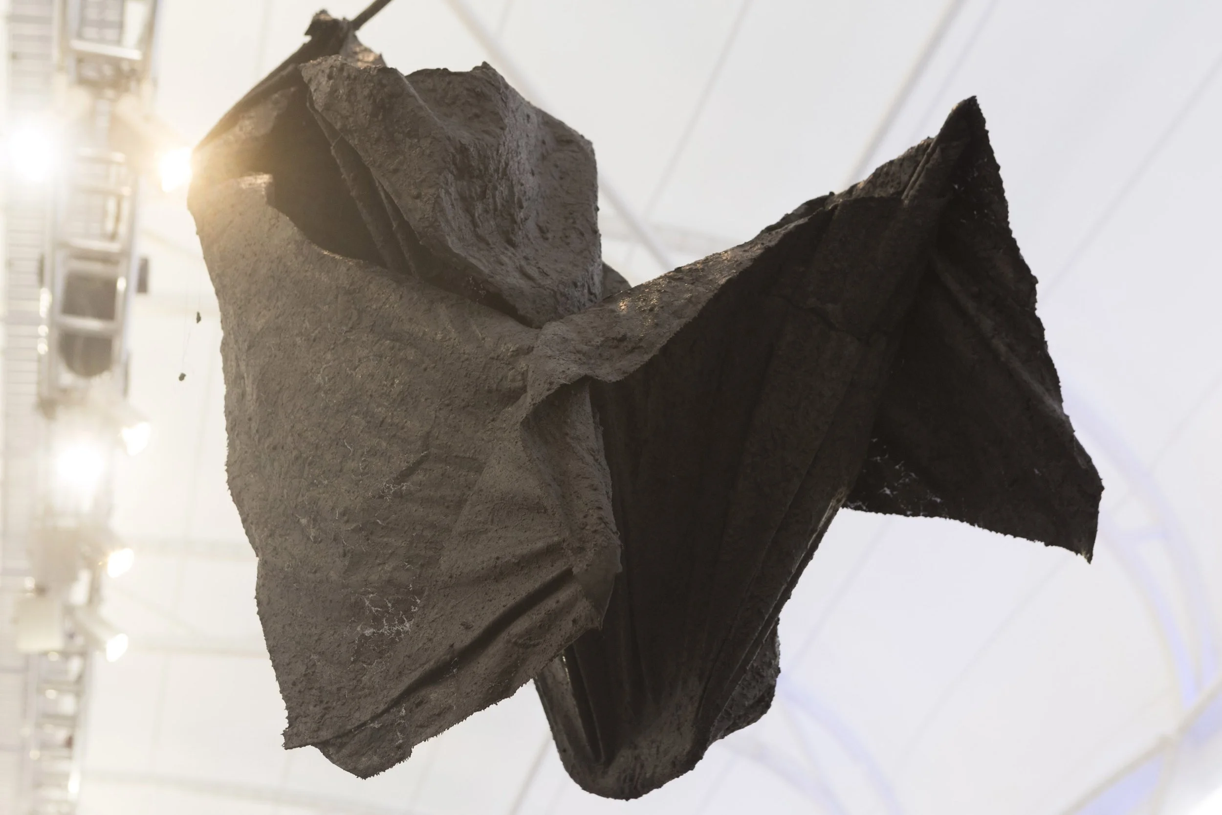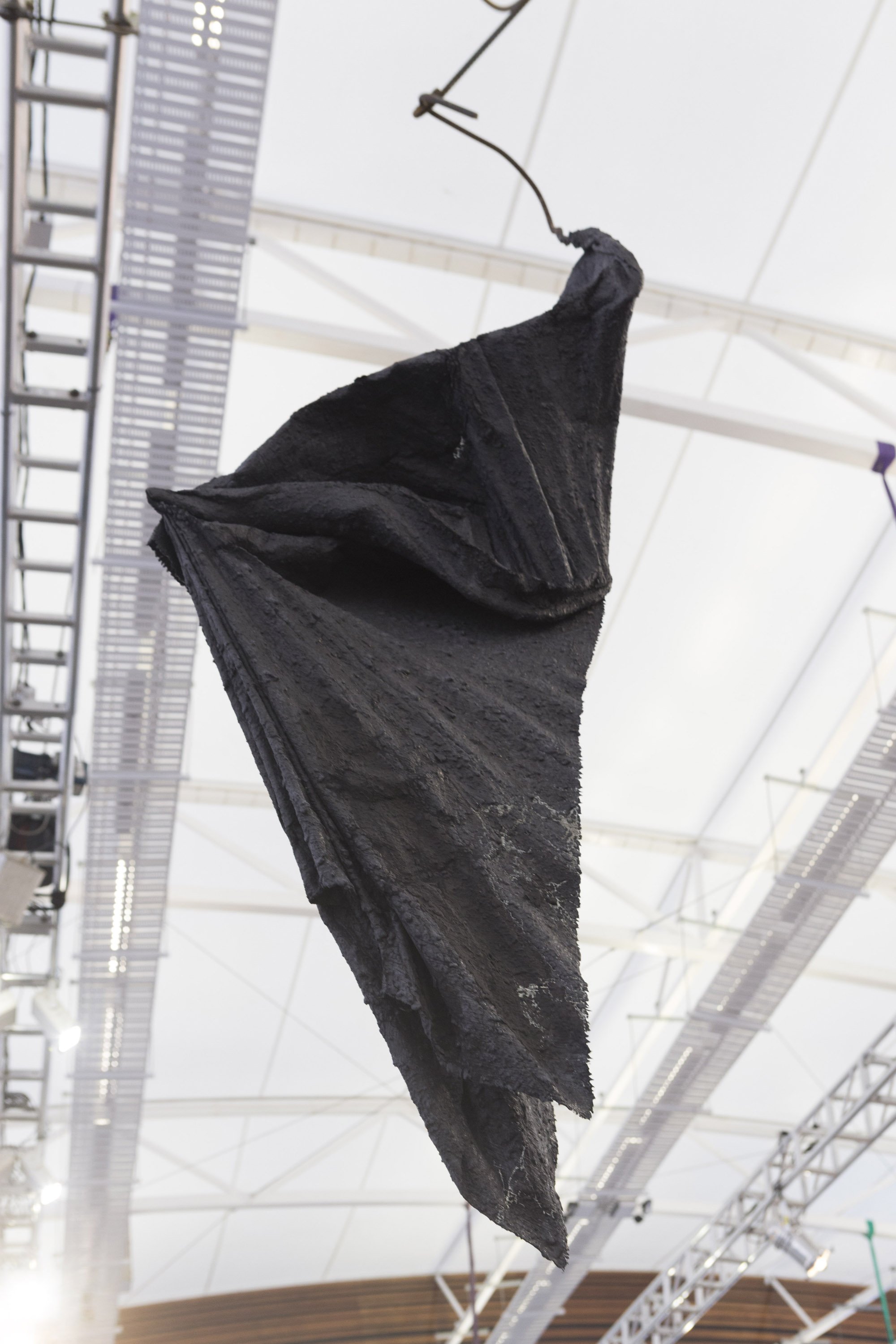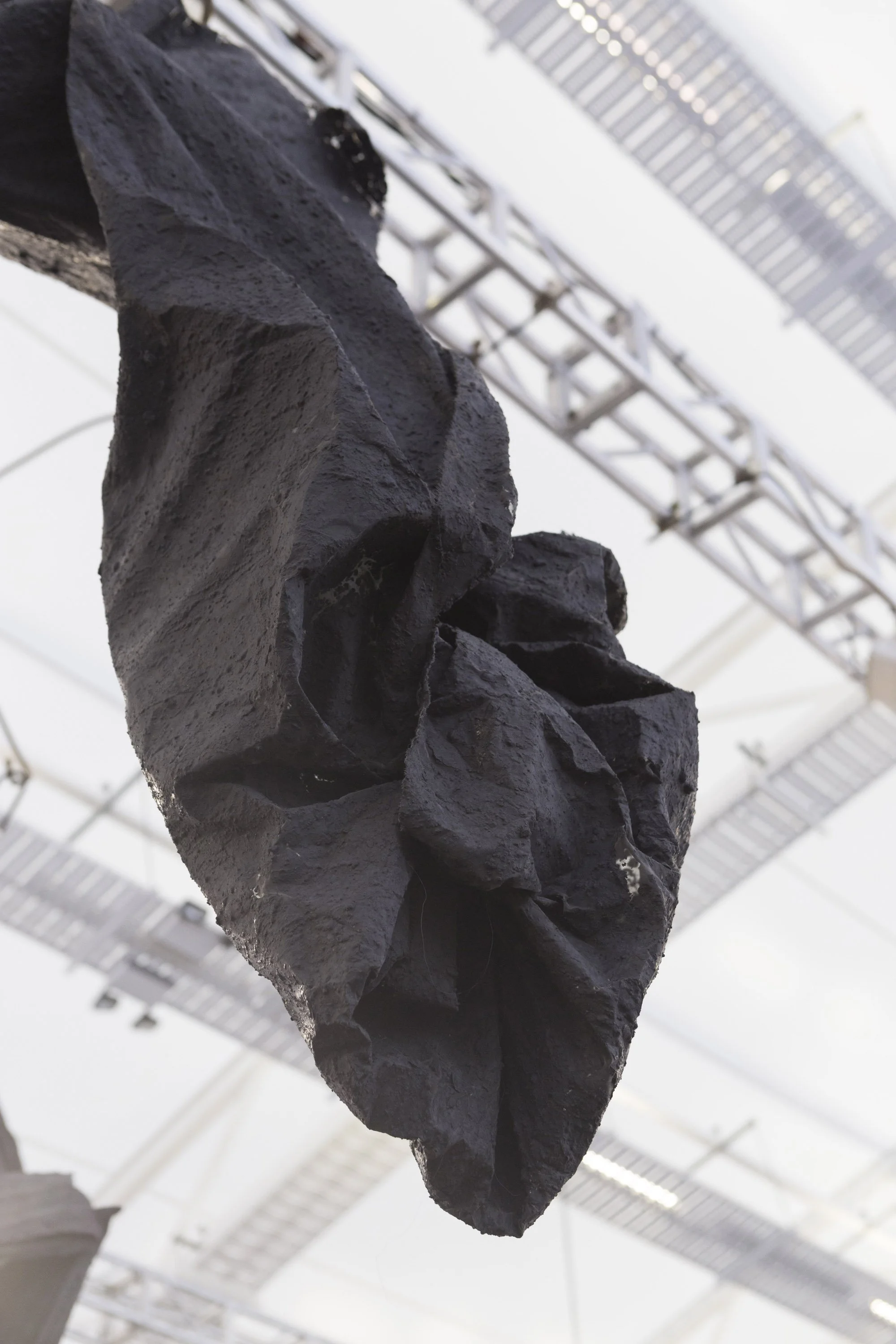 consume (detail), 2018, concrete, oxide, fabric and found rebar
