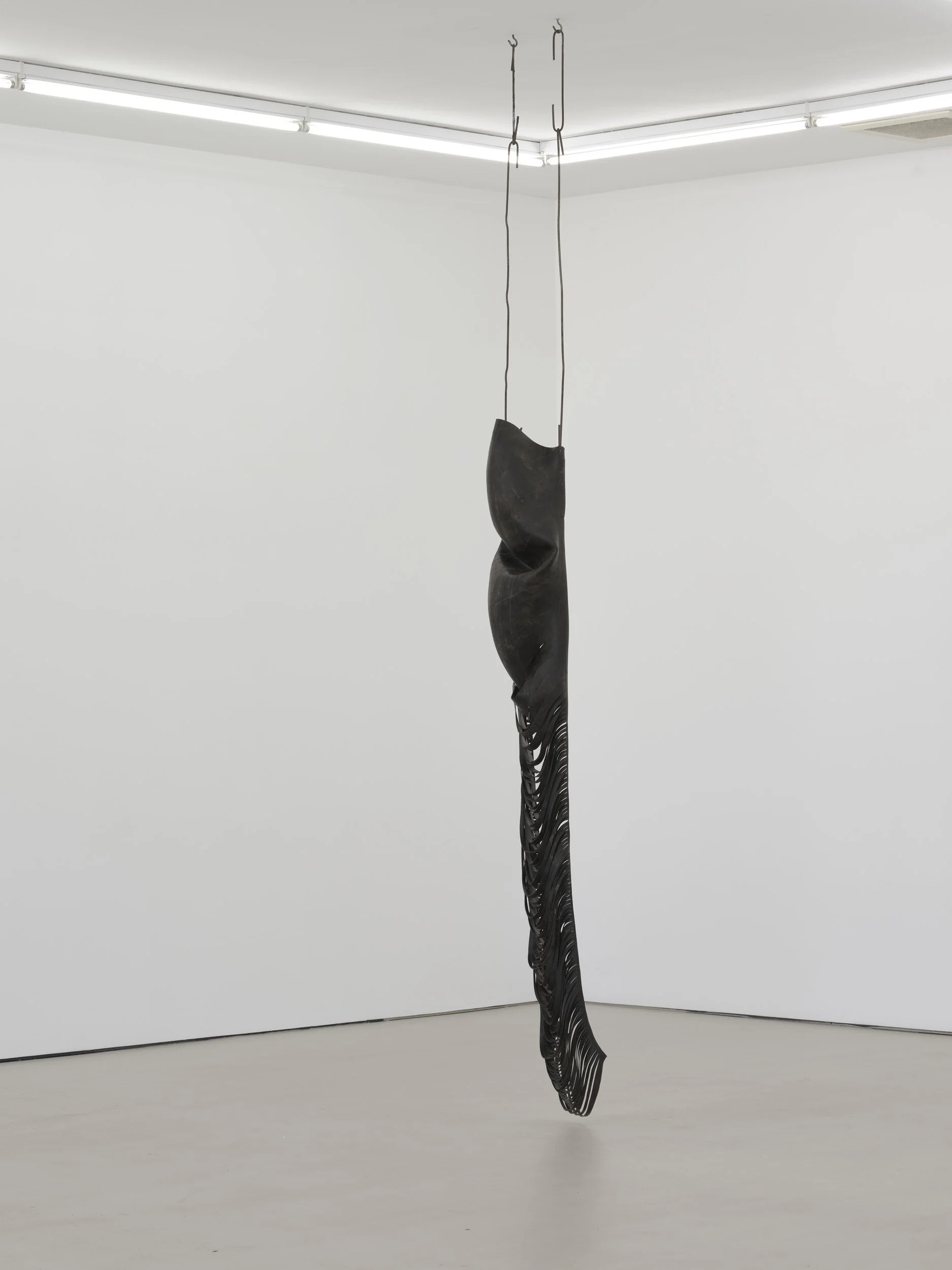 morph, 2021 rubber tubes and steel hooks, 2900 x 320 x 210mm