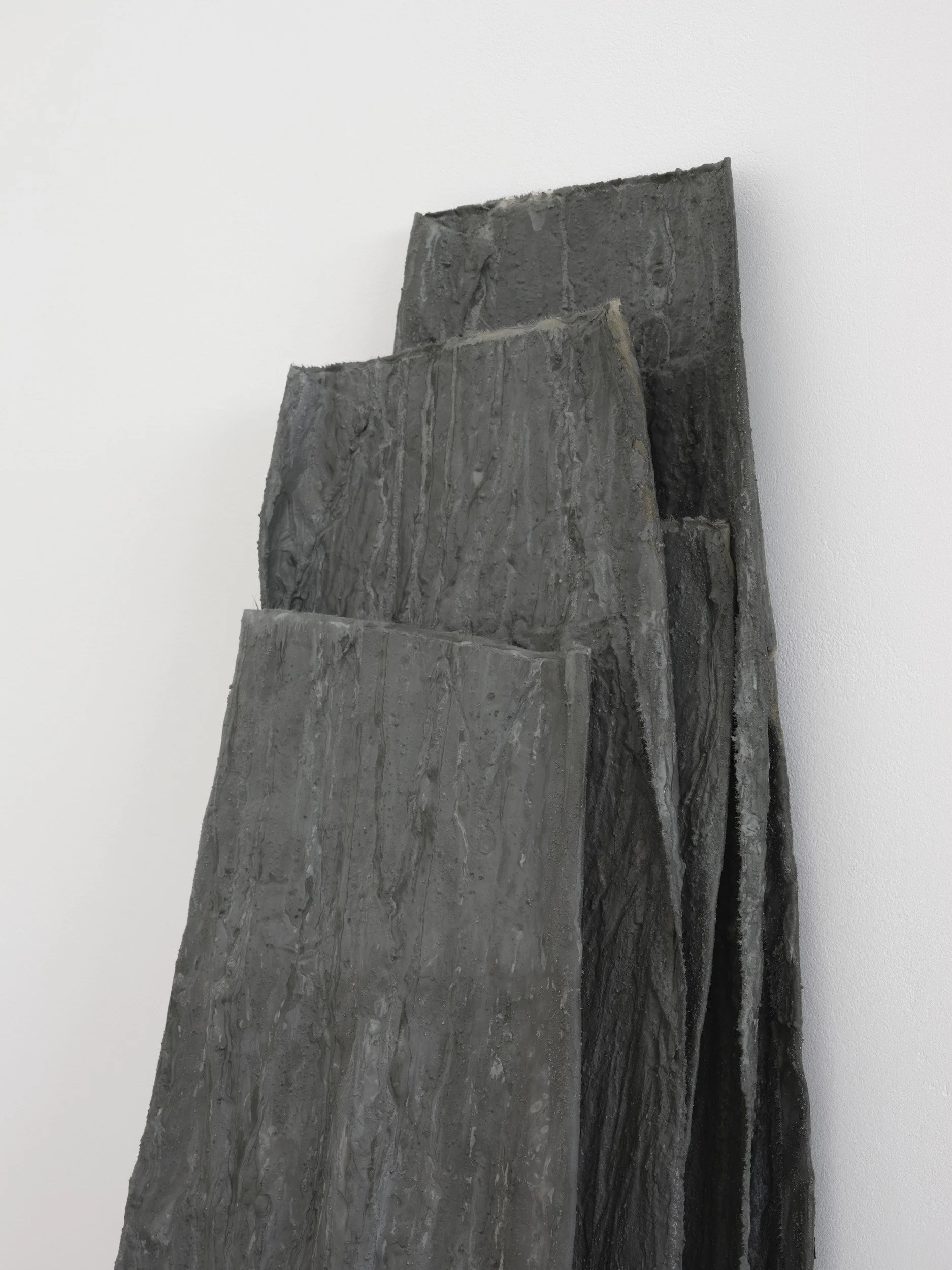 stack (three parts) (detail), 2021, concrete, oxide and fabric