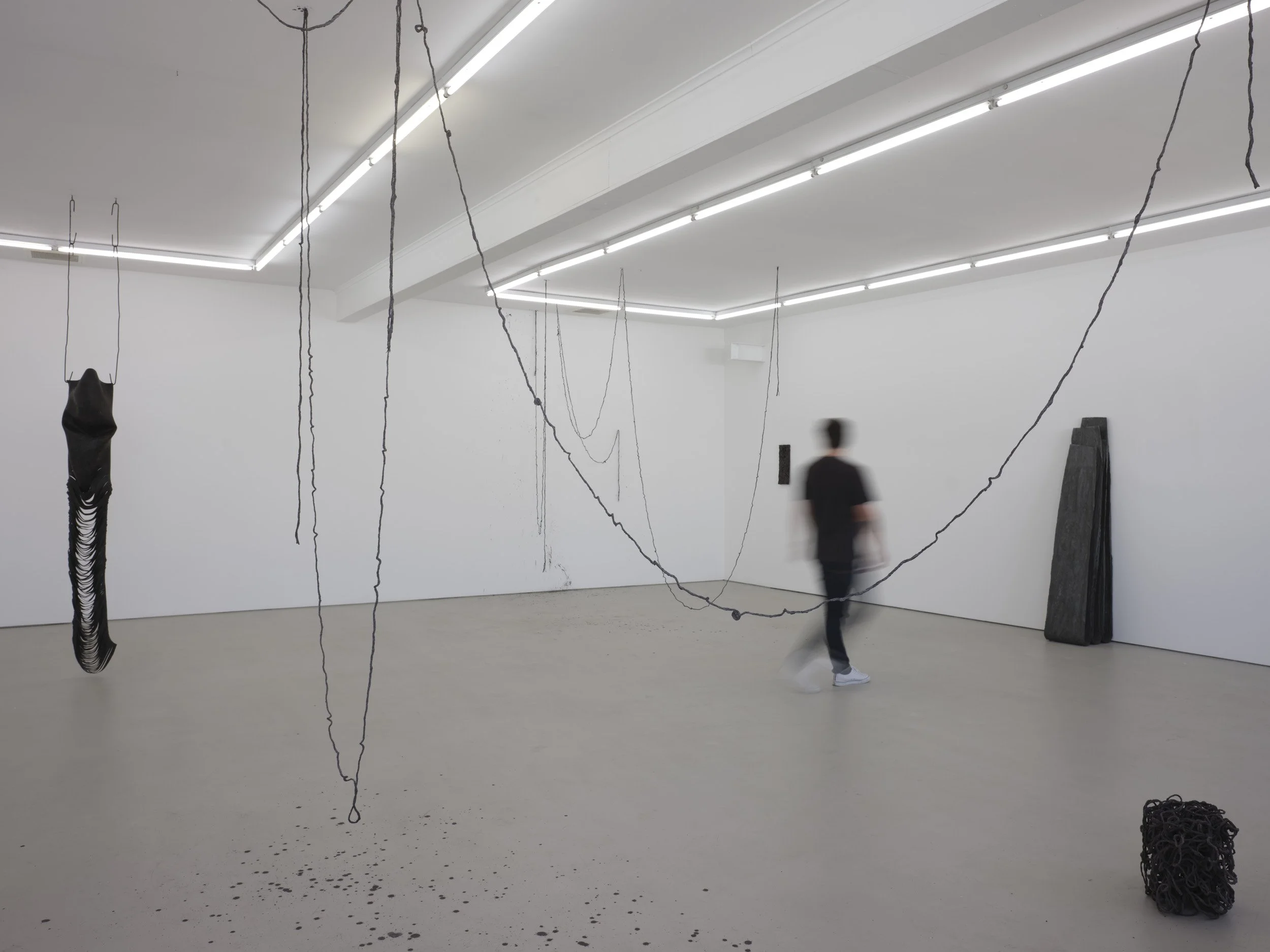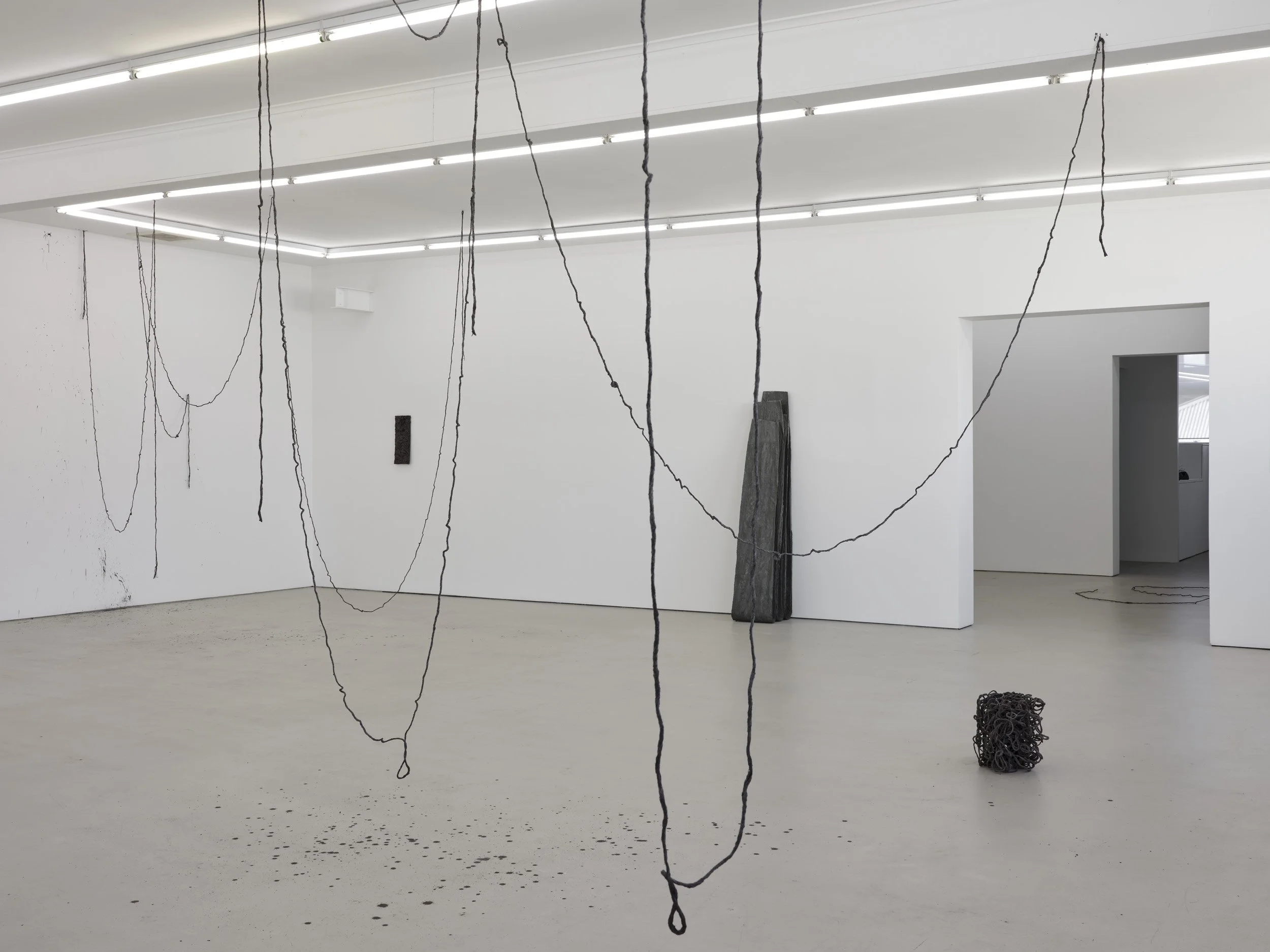 fragmentation, 2021, concrete, oxide, twine and nails, dimensions variable, multi-room scale