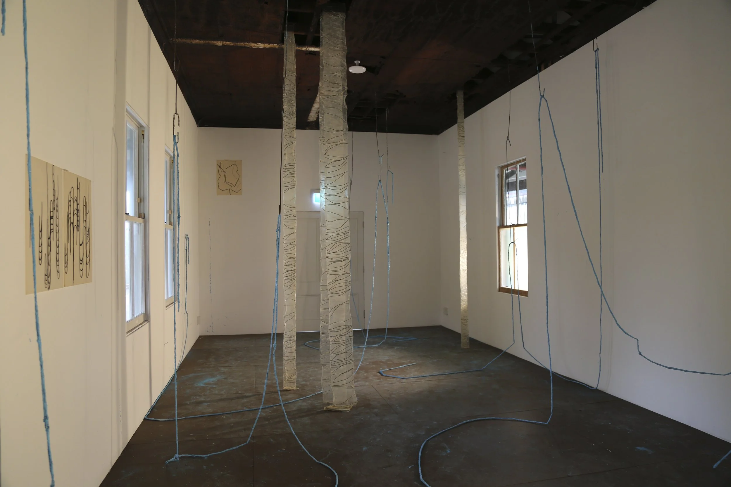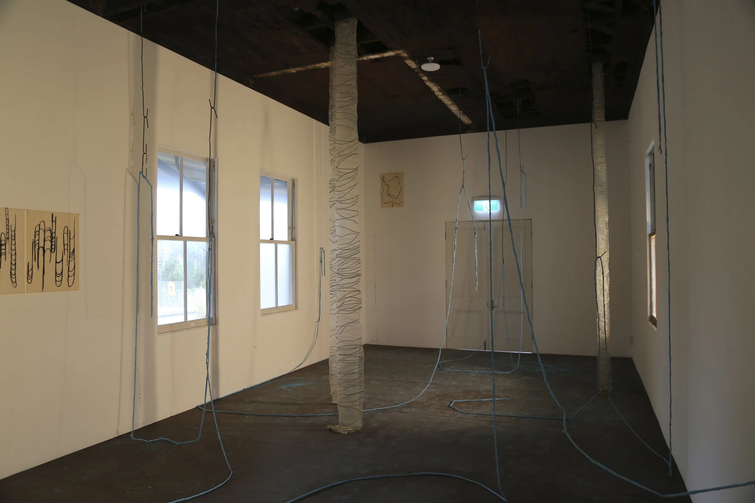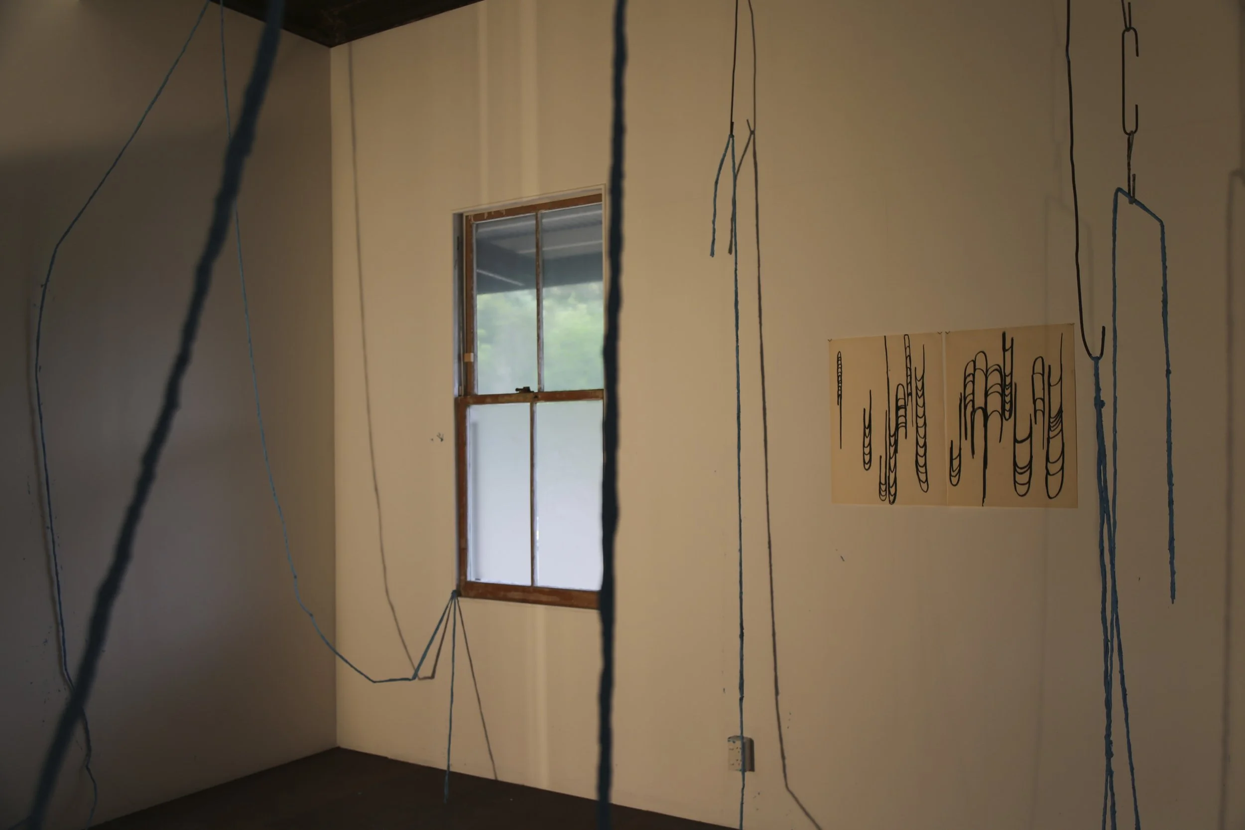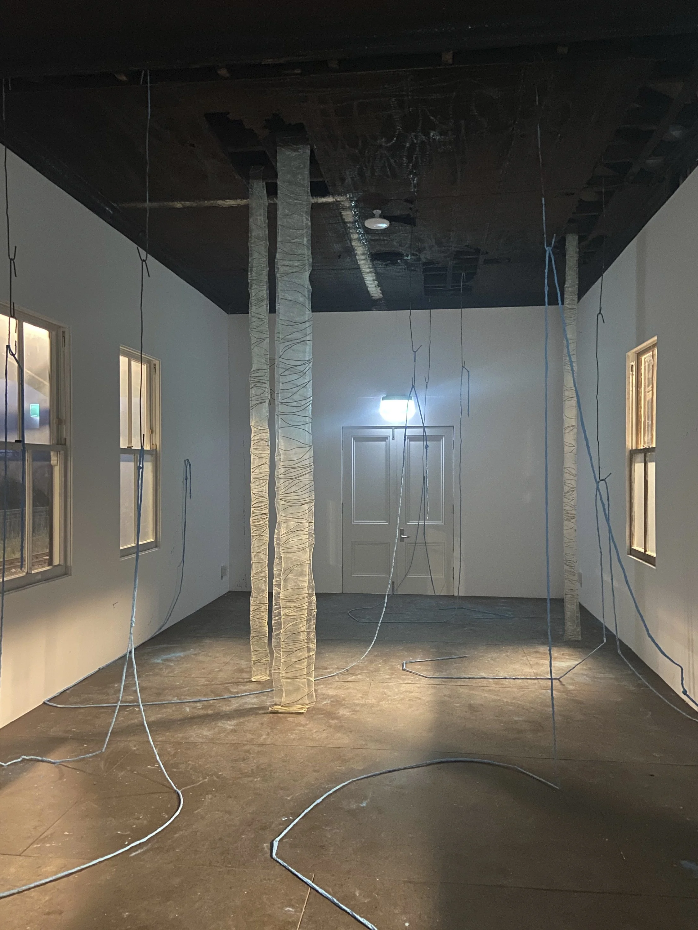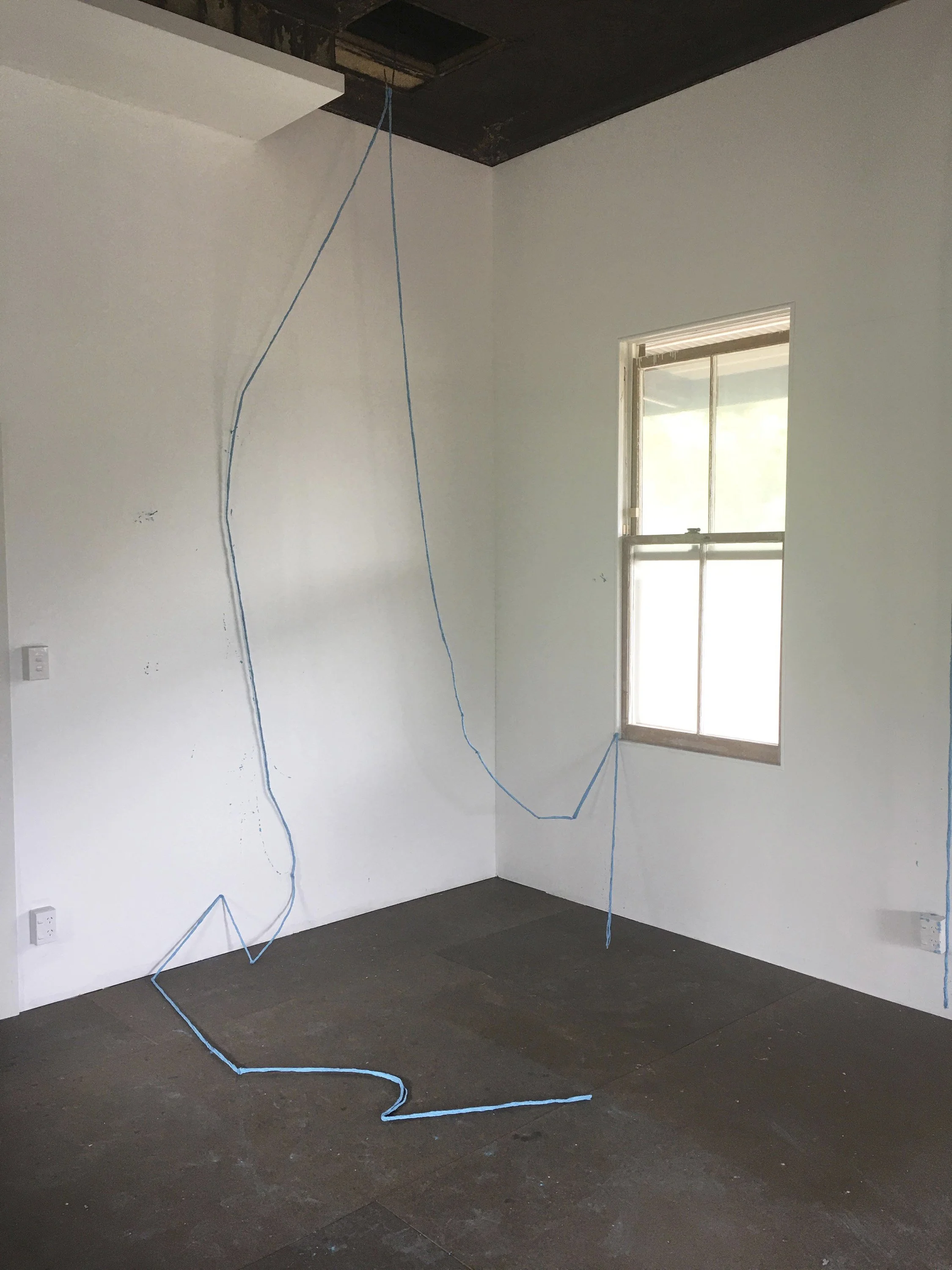 line I, 2020, concrete, oxide and twine, dimensions variable